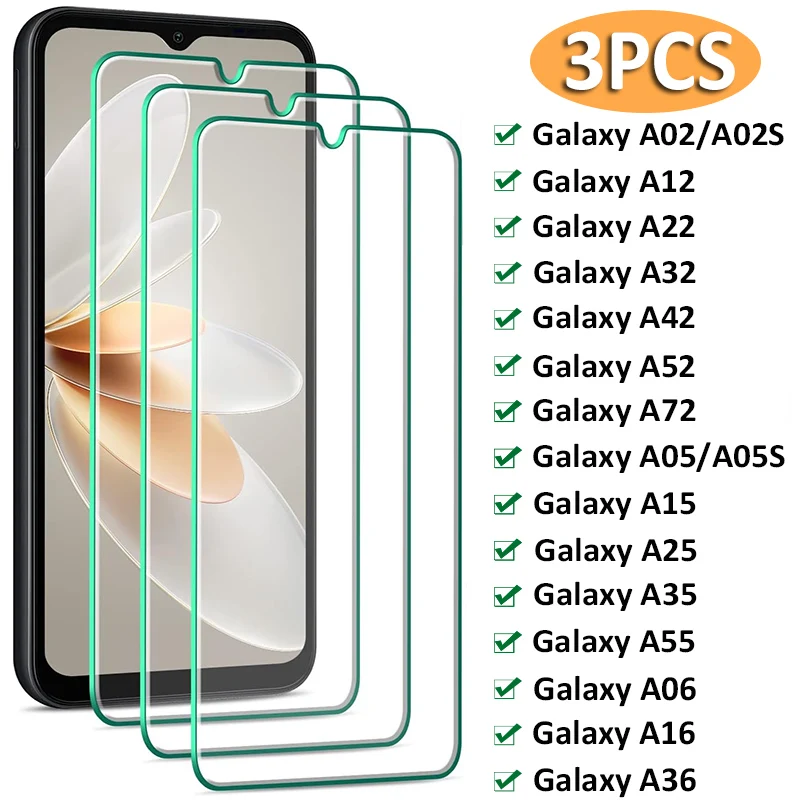 3PCS Tempered Glass for Samsung Galaxy A05 A15 A35 A55 A06S A16 A36 Screen Protector for Samsung A02s A12 A22 A32 A52s A72 Glass