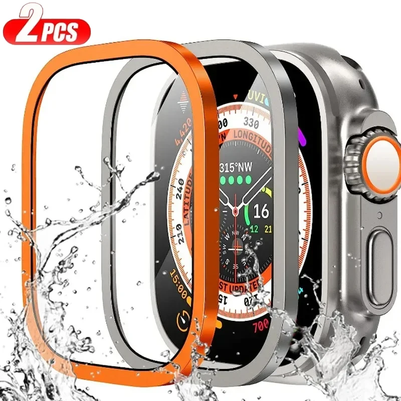 2PCS Tempered Glass For Apple Watch Ultra 49mm Screen Protector Anti-Scratch HD Metal Bumper Full Film for IWatch Ultra 49mm