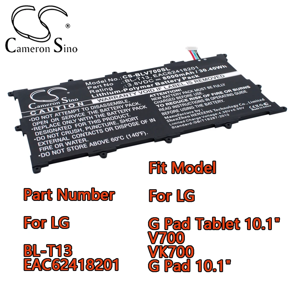 Cameron Sino 8000mAh Tablet Battery For LG G Pad Tablet 10.1" V700 VK700 G Pad 10.1" Part Number For LG BL-T13 EAC62418201
