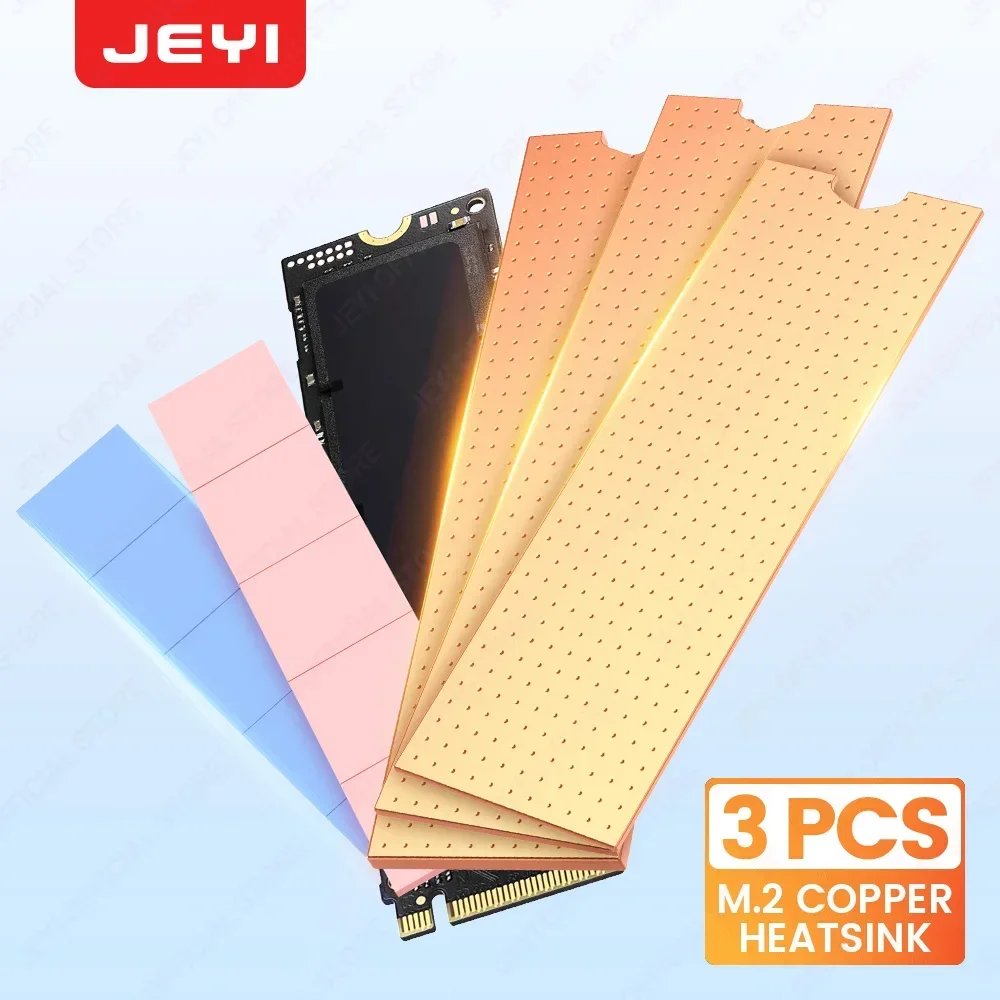 JEYI Copper M.2 HeatSink, 3pcs 2280 SSD Copper Cooler Solid State Disk Radiator with Thermal Silicone Pad for Laptop Desktop  Read more