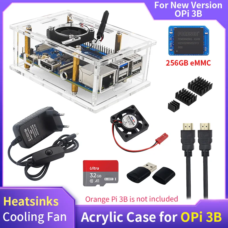 Orange Pi 3B Acrylic Case Transparent Shell Active Passive Cooler Optional Cooling Fan Aluminum Heatsink for New Version OPi 3B  Read more