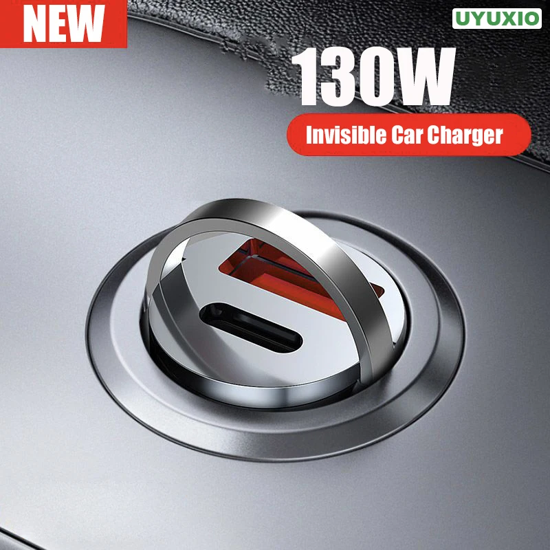 130W USB C Mini Car Charger PD 4.0 2 Port Super Fast Charing Invisible Adapter for iPhone iPad Samsung Huawei Android Phones  Read more