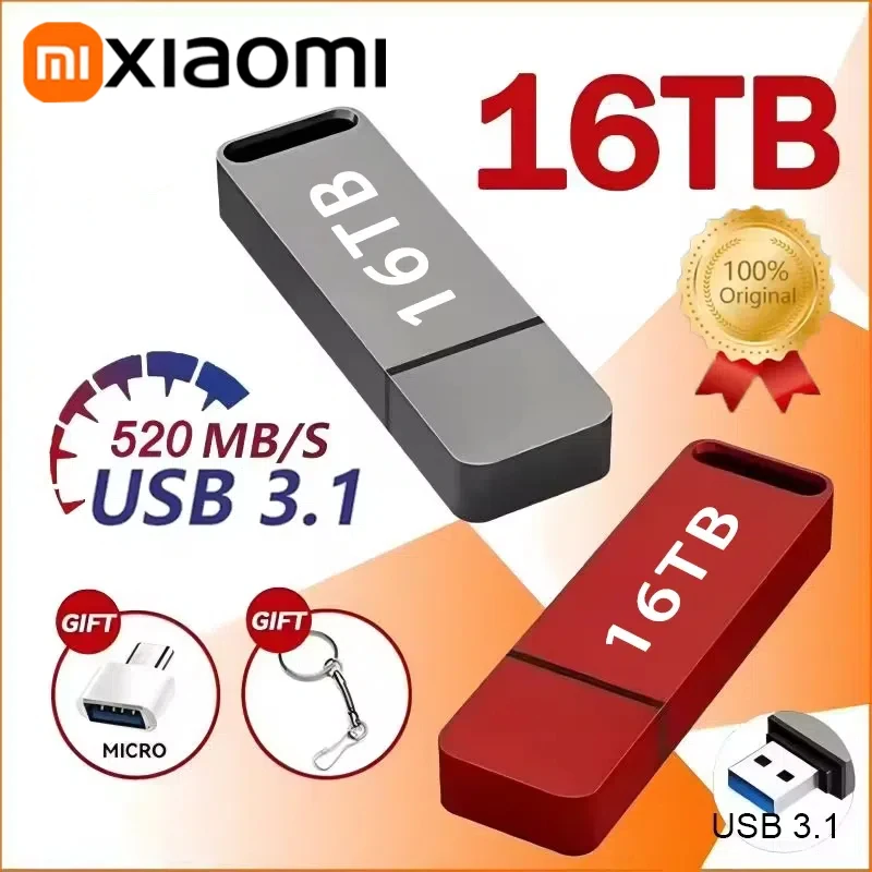 Xiaomi Original Pen Drive 16TB USB 3.2 Flash Drive High-Speed Pen Drive Type-C Metal USB Memory For Computer Storage Devices2025