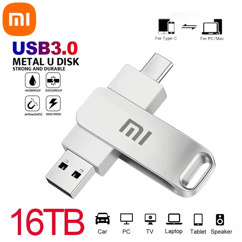 Xiaomi 16TB Flash Drive USB 3.0 Super High Speed Transfer Metal Mini U Disk Pen Drive Type C Memory Waterproof Disk SSD U Drive