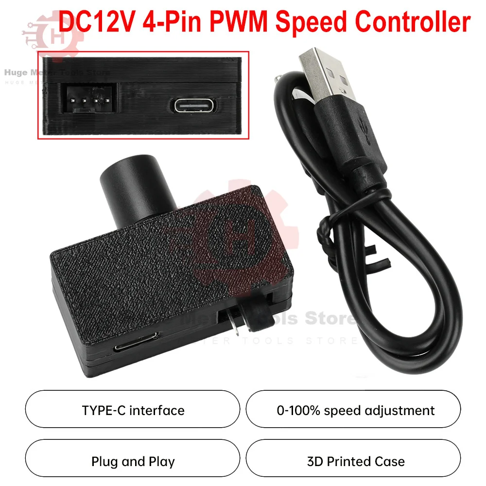 4-Pin PWM Fan Speed Regulation Controller DC 12V USB to Type-C Power Supply DIY Water-cooling Cooling Pulse Width Modulation