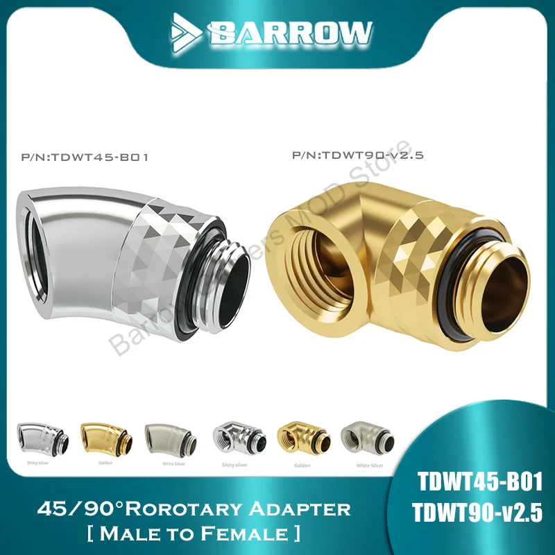 Barrow Dazzle 45° 90° Angled Fittng Elbow Computer Water Cooling Connector 360° Rotatable Adapter Swivel TDWT90-V2.5 TDWT45-B01