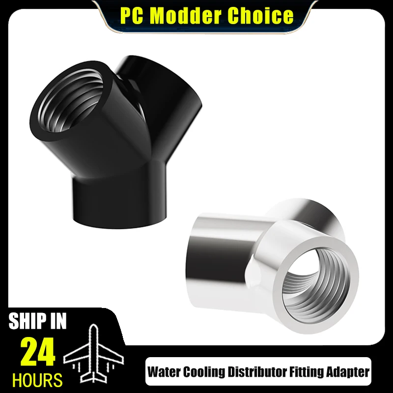 Freezemod Water Cooling Y Shape Splitter Distributor Fitting Adapter, Inner G1/4'' X3 Tee, Black / Silver, HDTD-3YTB