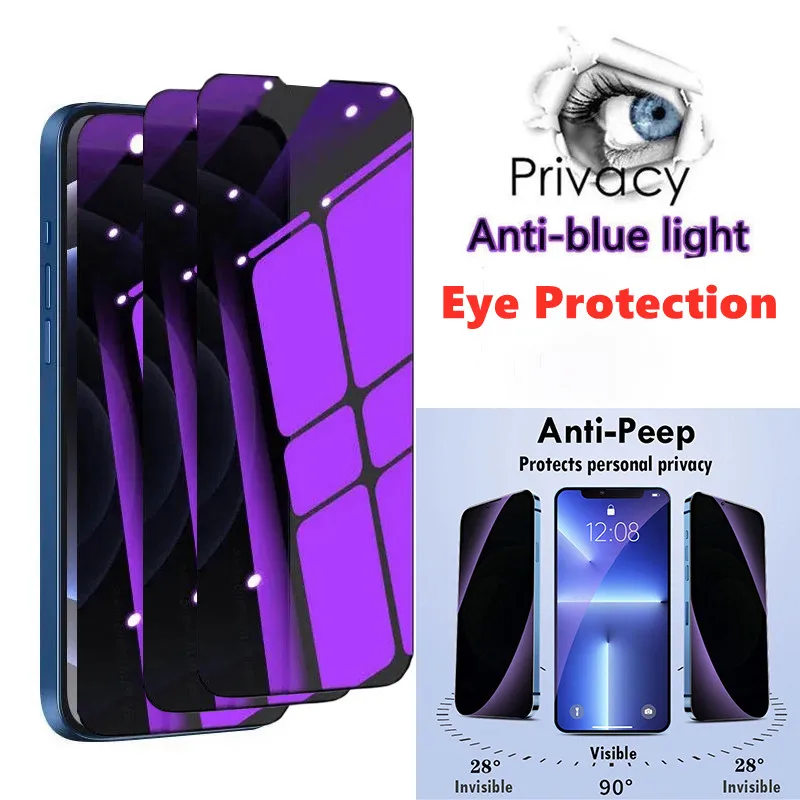 1-3 Pcs Anti Blue Light Privacy Tempered Glass for iPhone 15 Pro Max 14 Plus 13 12 Mini 11 Eye Protection Clear Screen Protector