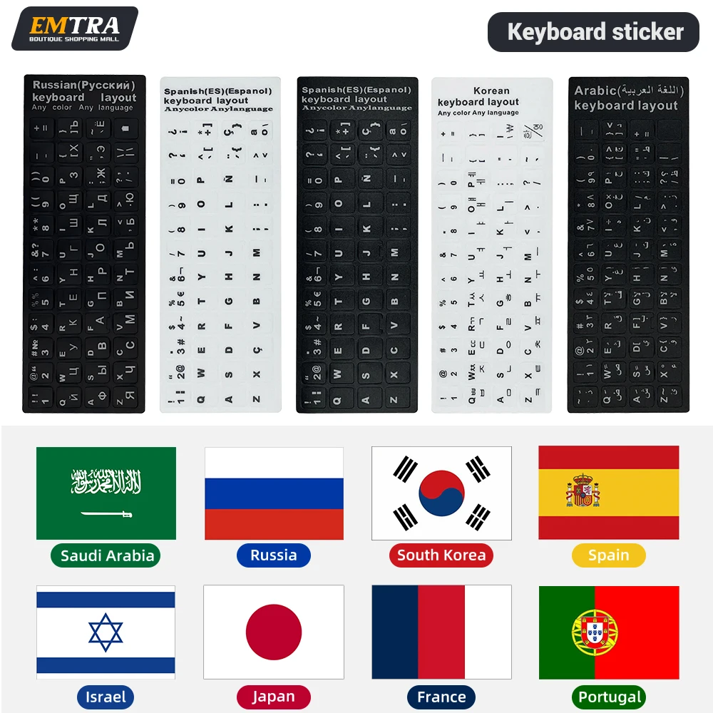 Keyboard Stickers For Russian Spanish Portuguese Arabic Korean French Hebrew Japanese Laptop PC Desktop Letter Alphabet Layout  Read more