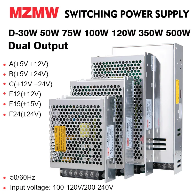 MZMW 30W 50W 75W 100W 120W 350W 500W Dual Output Switching Power Supply -5v 12V -12V 15V -15V 24v -24v AC/DC Driver Transformer  Read more