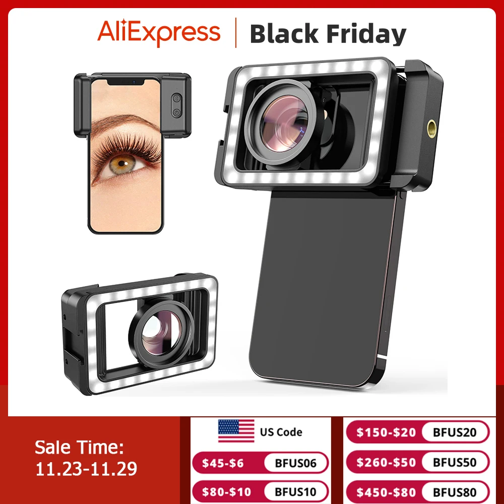 APEXEL New Upgraded HD 15x Super macro lens With LED Fill Light Universal Clamp Micro Lenses for iPhone Samsung all Smartphones