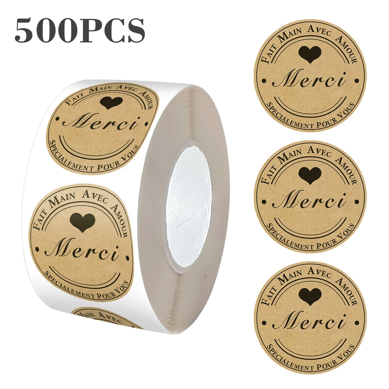 500pcs Merci Kraft Sticker French Thank You Fait Main Avec Amour DIY Multifunction Paper Label Adhesive Gift Seal Sticker