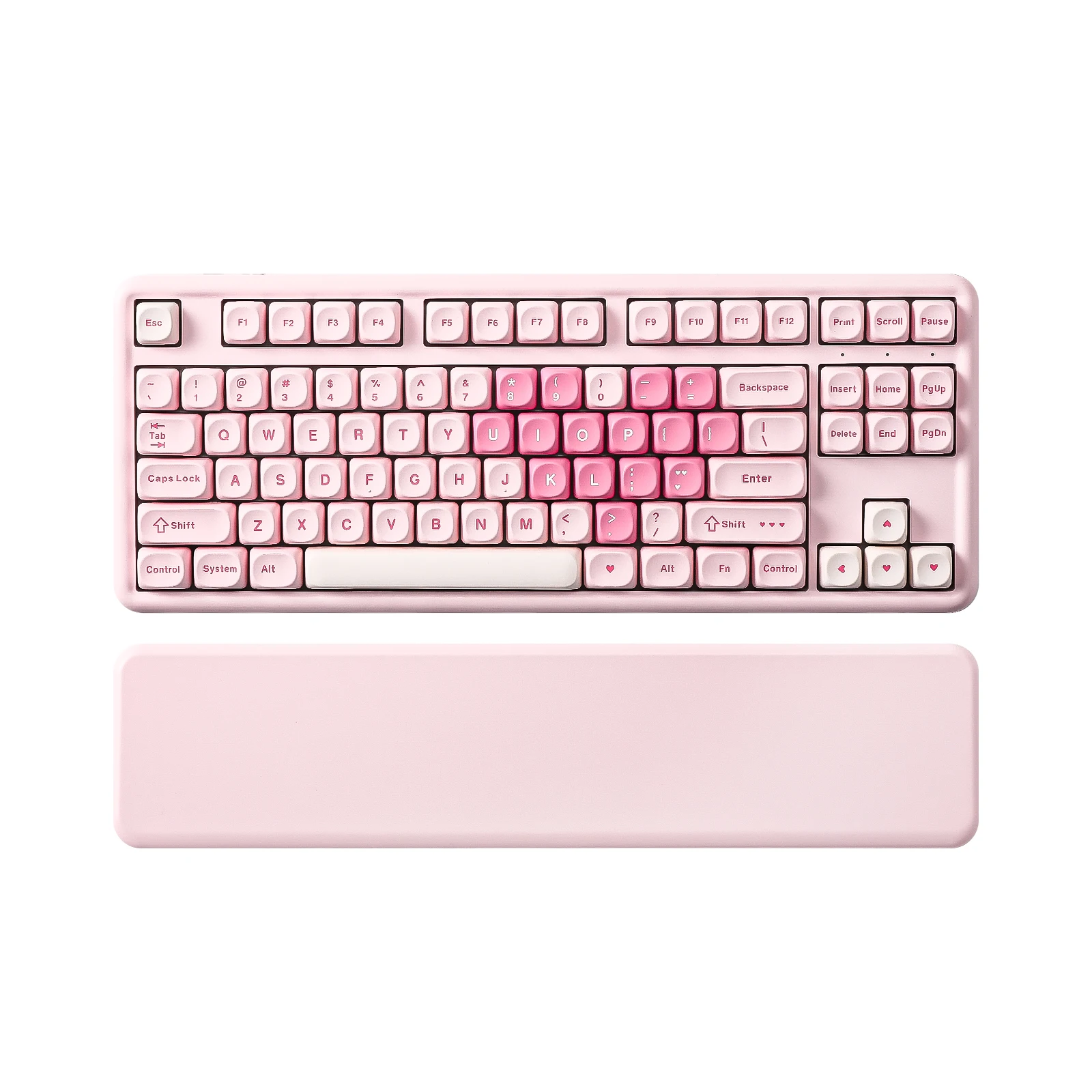 YUNZII B87 Pink Mechanical Gaming Keyboard, QMK/VIA Custom Gasket RGB Keyboard, Wireless Aesthetic Keeb, Wrist Rest for Win/Mac