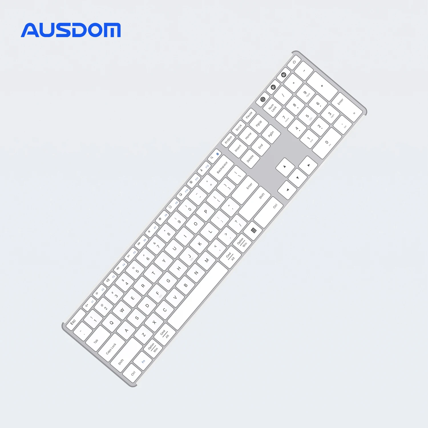 AUSDOM White Sofkeys4 Wireless Bluetooth Dual Mode 3 Key Zone Keyboard Office Home Keyboard Silent 110 Keys For PC Computer Ipad