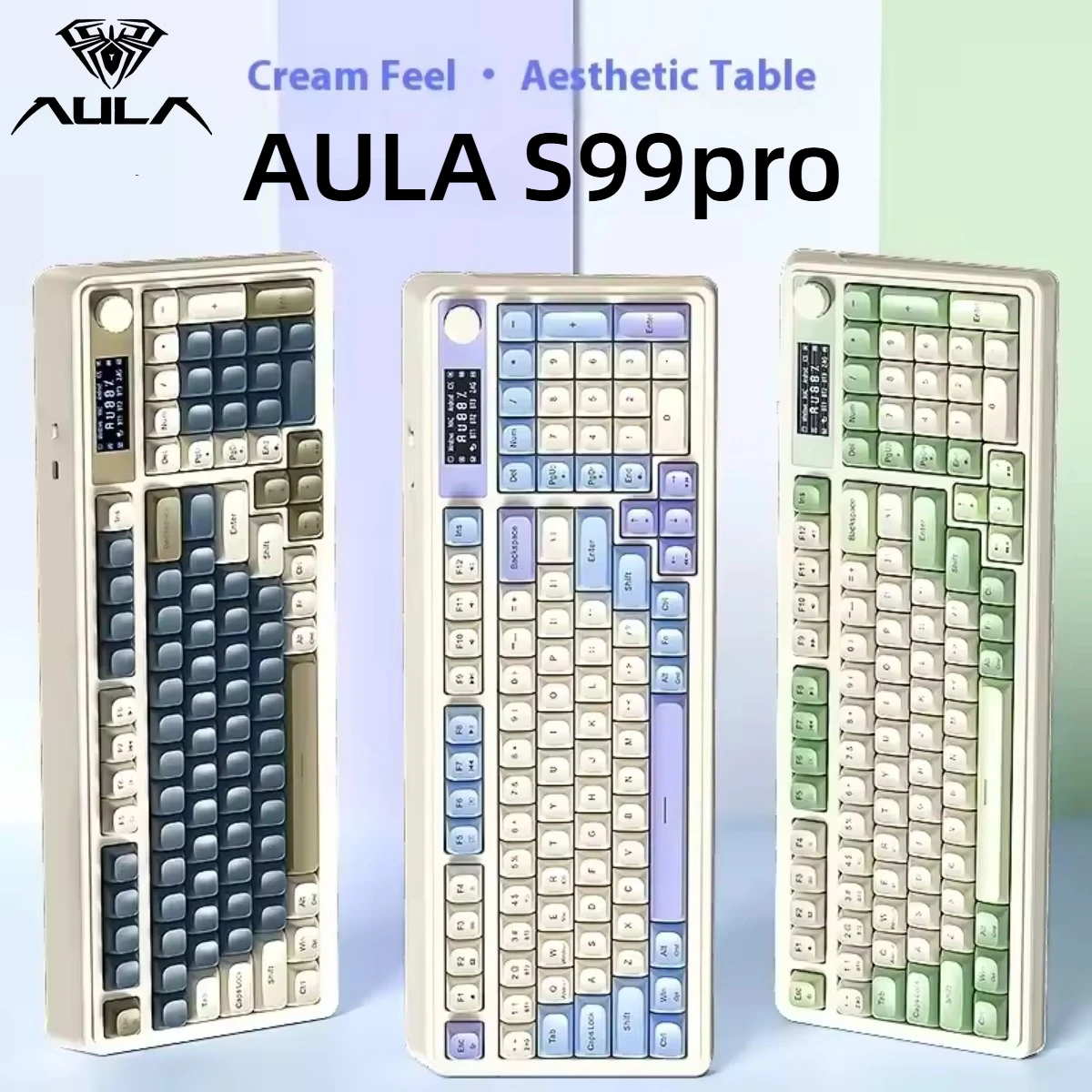 AULA S99 S99pro Gaming Keyboard Three Mode Multifunctional Knob Smart Screen Ergonomics Custom Wireless Keyboard PC Accessories  Read more