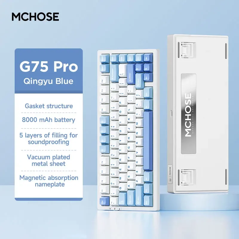 MCHOSE G75 Pro Gaming Mechanical Keyboard Tri-Mode Wireless Hot Swappable RGB Backlit Customized 75% Layout Pc Gamer Accessories
