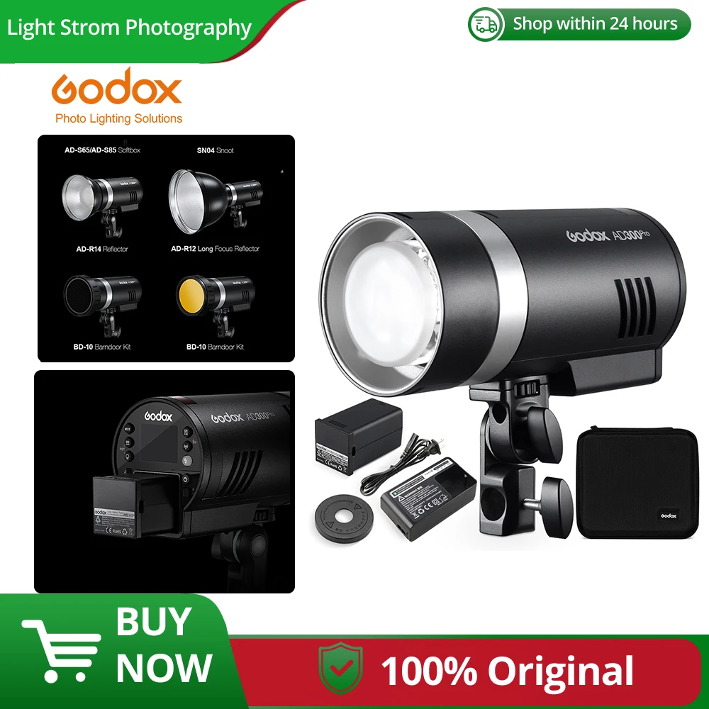Godox AD300Pro Outdoor Flash Light 300Ws TTL 2.4G 1/8000 HSS with 2600mAh Battery for Canon Nikon Sony Fuji Olympus Pentax