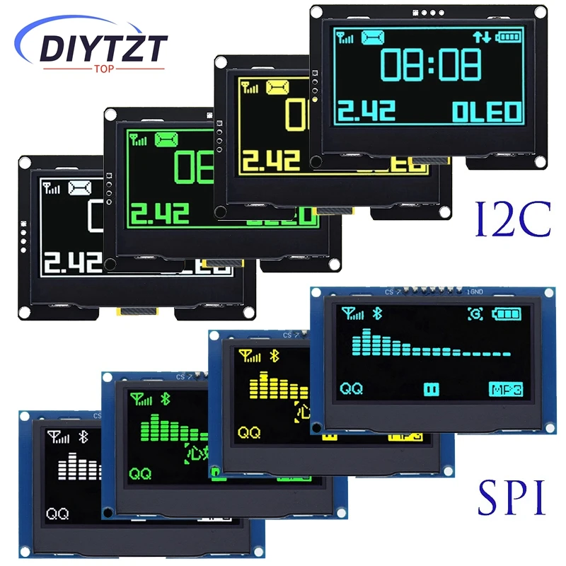 DIYTZT 2.42 Inch 2.42" OLED Display Module 128x64 LCD HD Screen Module SSD1309 7 Pin SPI/IIC I2C Serial Interface For Arduino