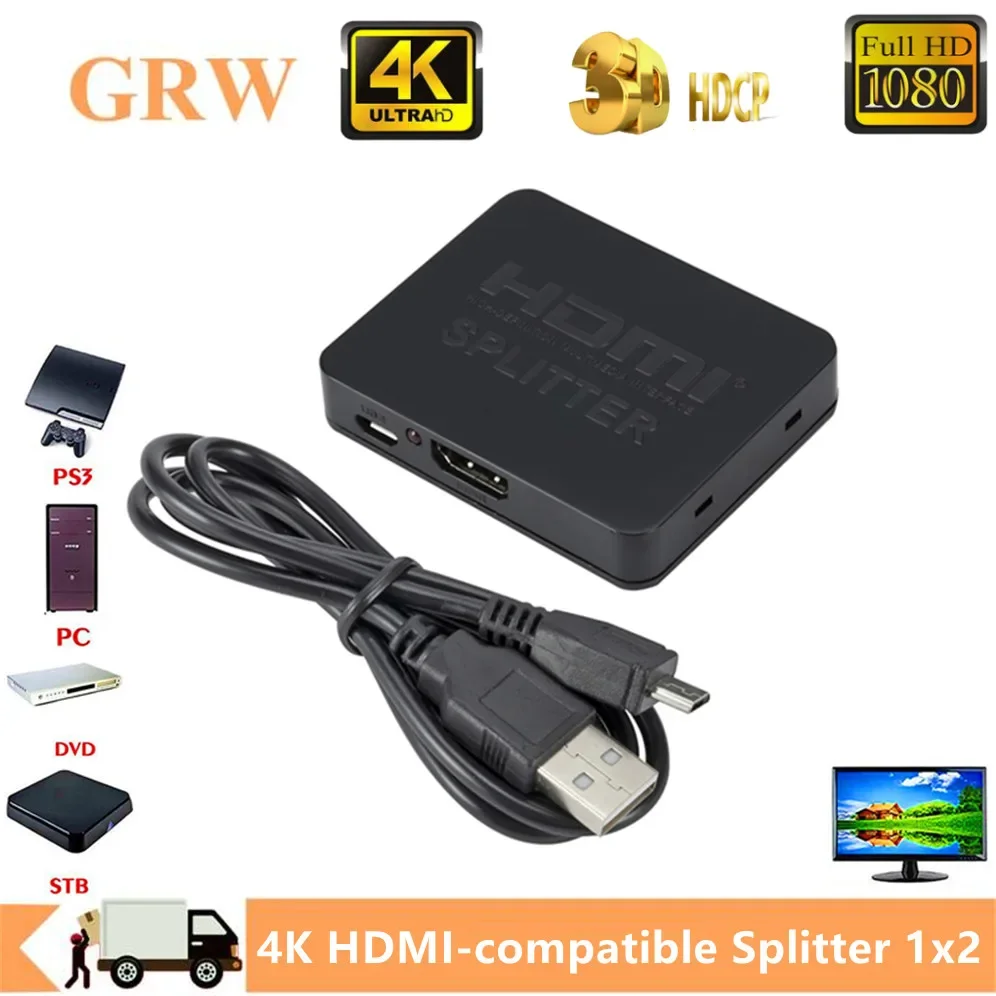 4K HDMI Splitter 1 in 2 Out HDMI Switch 1x2 HDMI Video Splitter Amplifier Dual Display for HDTV Box PC Monitor Projector Laptop
