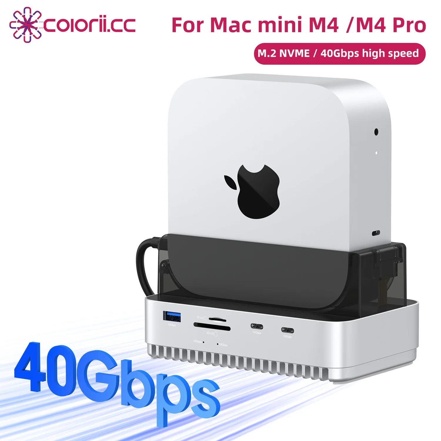 USB C Hub with M.2 SSD Enclosure 40Gbps for Mac Mini M4/M4 Pro Stand Type-C Docking Station SSD Case USB3.2 Gen2 SD4.0 TF4.0