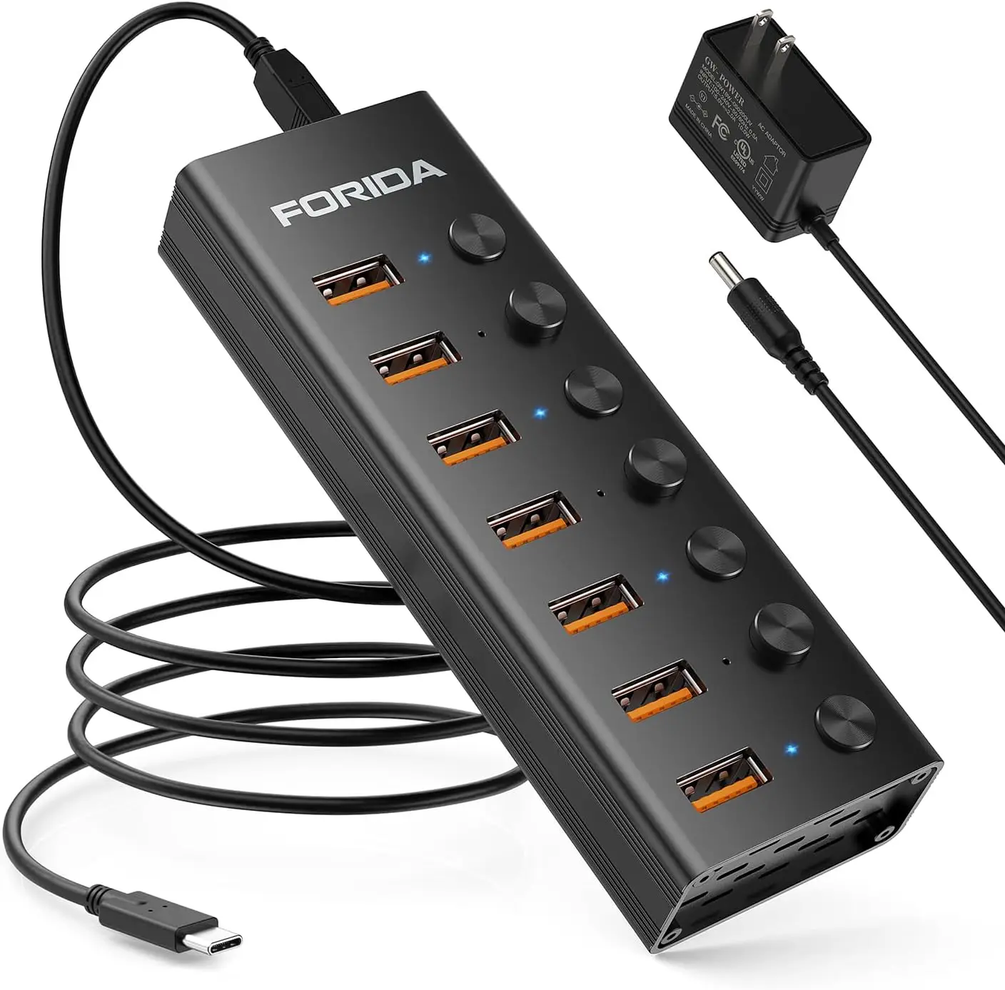 Getatek Powered USB 3.2 HUB 4/7 Ports USB Extension with On/Off Switches 12V Power Adapter Support for MacBook Mac Pro Tablets
