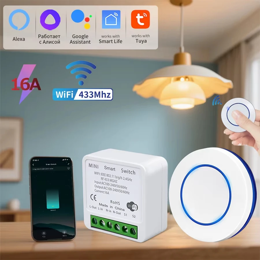 Tuya WiFi Smart Switch 16A RF 433Mhz Wireless Relay Receiver Mini Round Panel Switch Voice Control With Alexa Google Home Alice  Read more