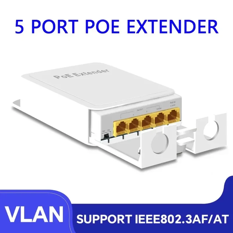 For IP Camera Wireless AP 5-Port Outdoor Waterproof PoE Extender 100/1000Mbps PoE Repeater IP55 VLAN 44-57V Network Switch