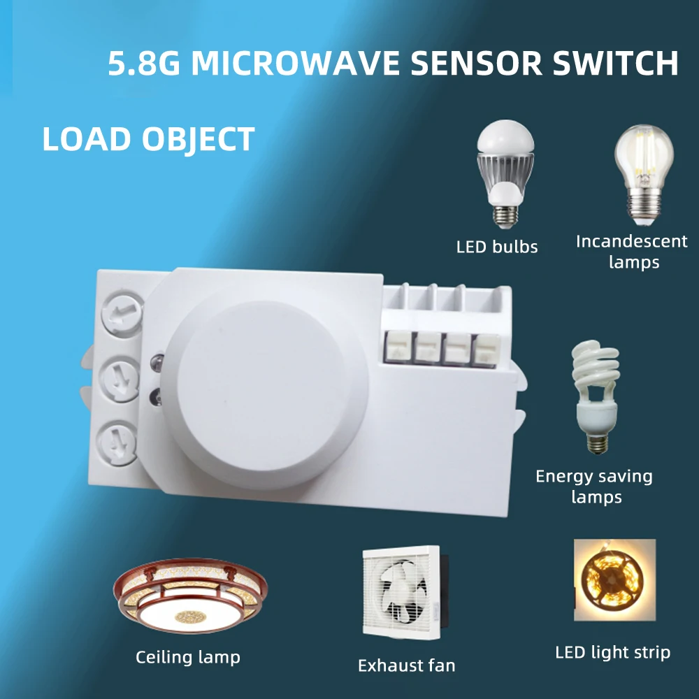 AC 85V-250V 5.8GHz Microwave Radar Sensor Switch Body Motion Detector For LED Light Sensors Switches