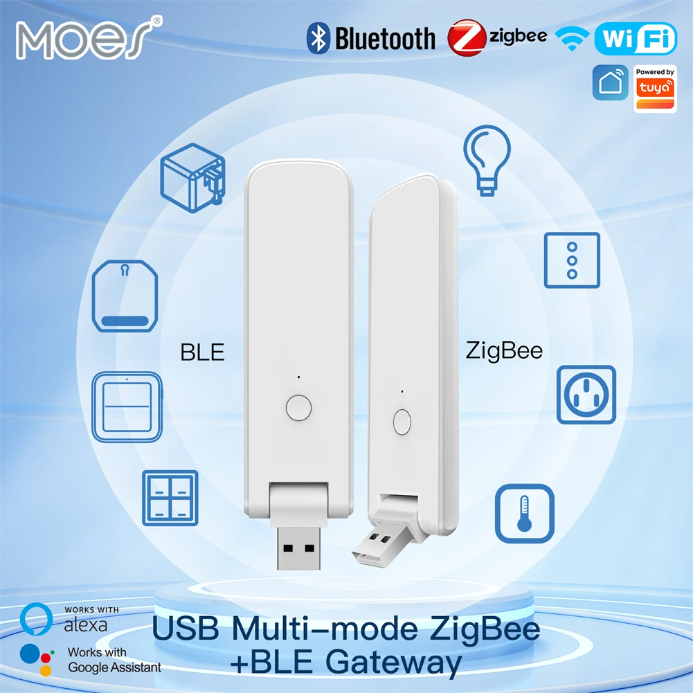 MOES Tuya Smart USB Multi-mode Gateway Bluetooth+ZigBee Wireless Hub Control Smart Home Control Compatible with Alexa GoogleHome