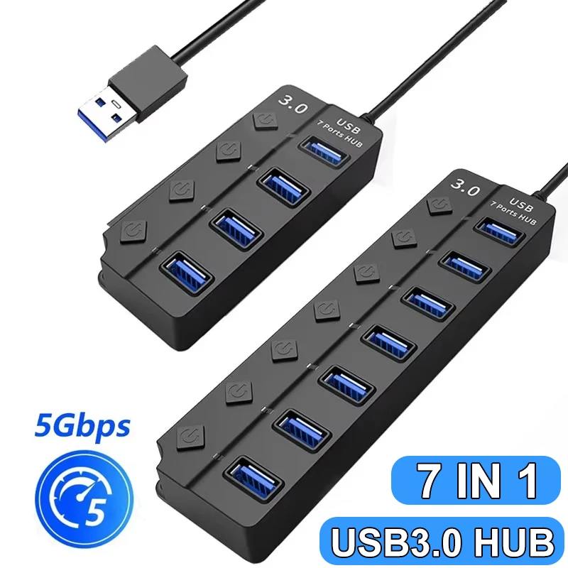USB Hub 3.0 Multiprise USB High Speed Splitter 7 Port 5Gbps Hub Power Adapter with Switch Long Cable with Multiple Expander Hub