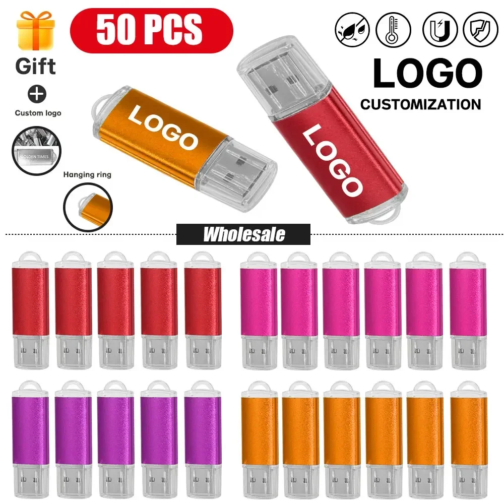 50/PCS LOT USB 2.0 Flash Drive 128GB Colorful Memory Stick 64GB Wedding Gift Pen Drive 32G 16G Pendrive Free Custom Logo
