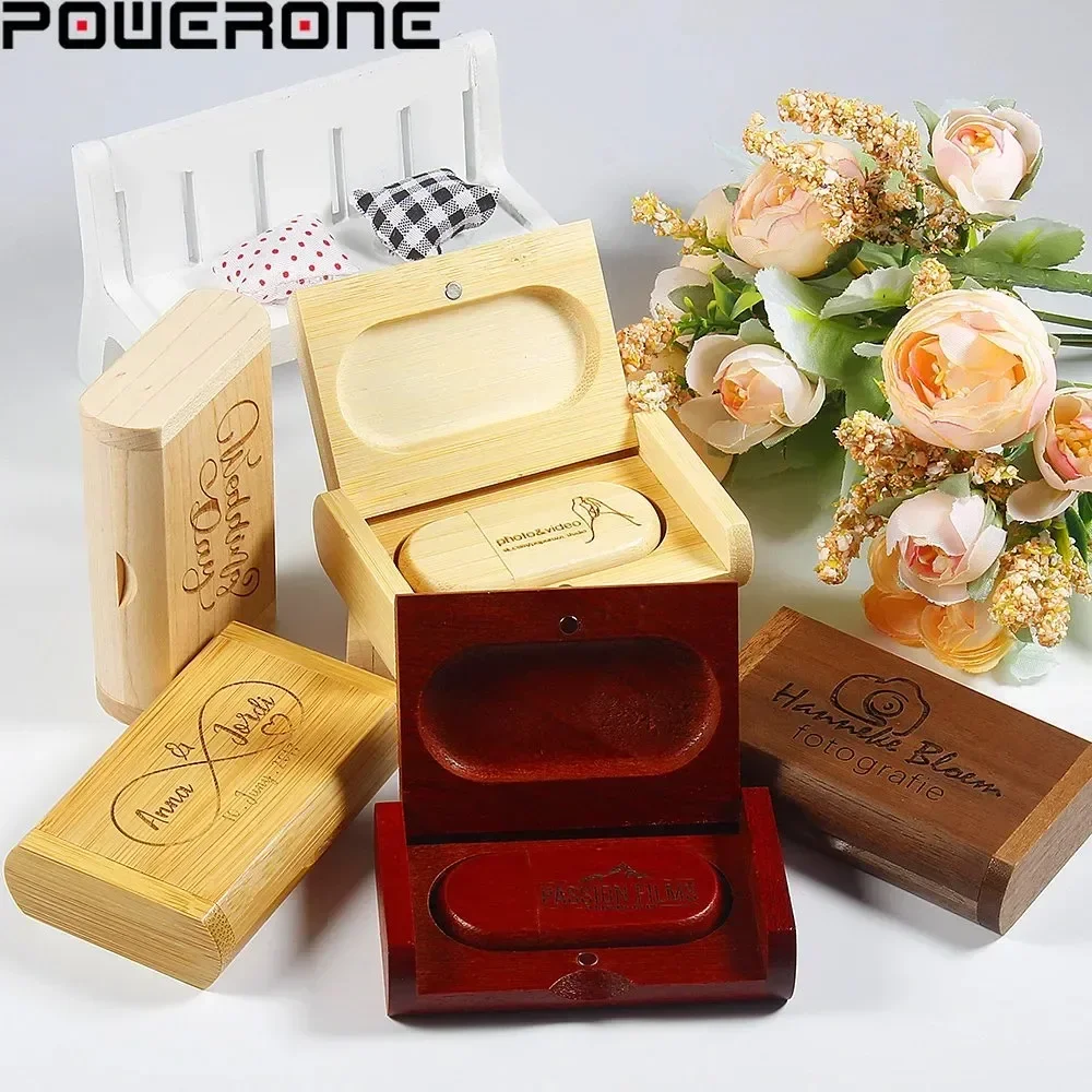 Free Custom Logo USB Flash Drives 64GB Wooden + Box USB 2.0 Disk 32GB Photography Data Storage 16GB Wedding Gift Pen Drive 8GB