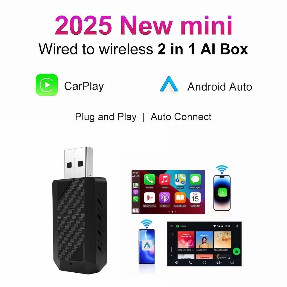 2024 Mini 2-in-1 2.4G & 5.8G Bluetooth WIFI Wired to Wireless for Apple Carplay AI Box Android Auto Dongle USB Adapter