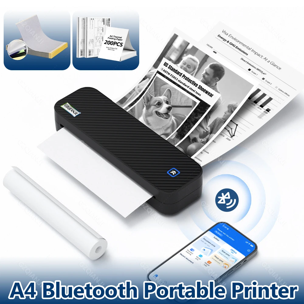 A4 Inkless Portable Thermal Printer Bluetooth PDF Excel Word Document Printing Maker Paper Roll Fold For Office Work Home School
