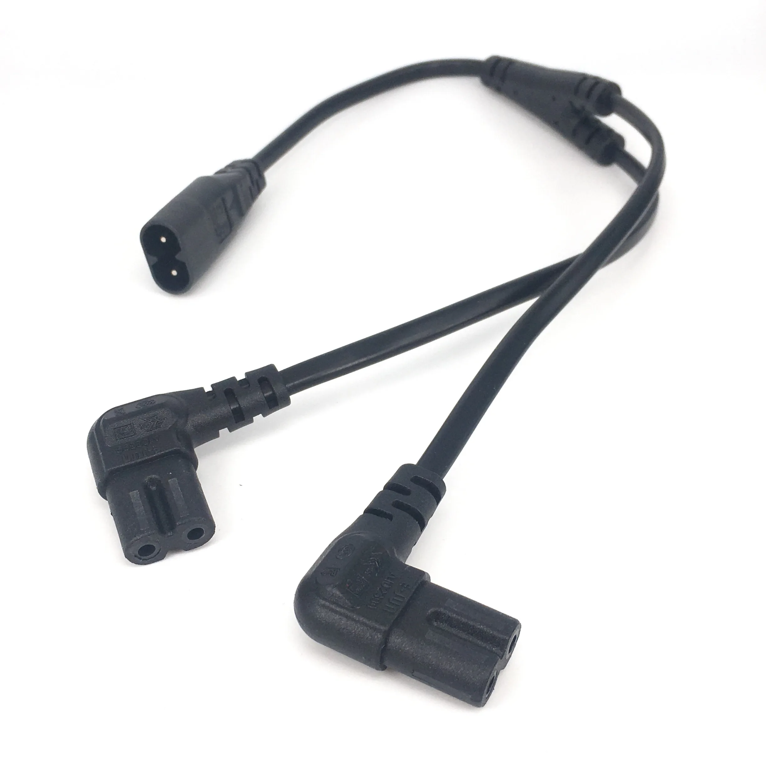 IEC 320 C8 Male to Dual C7 Right Angle Female Y Split Power Cable, IEC 2Pin Figure 8 Male to 2 Female Cord 30CM