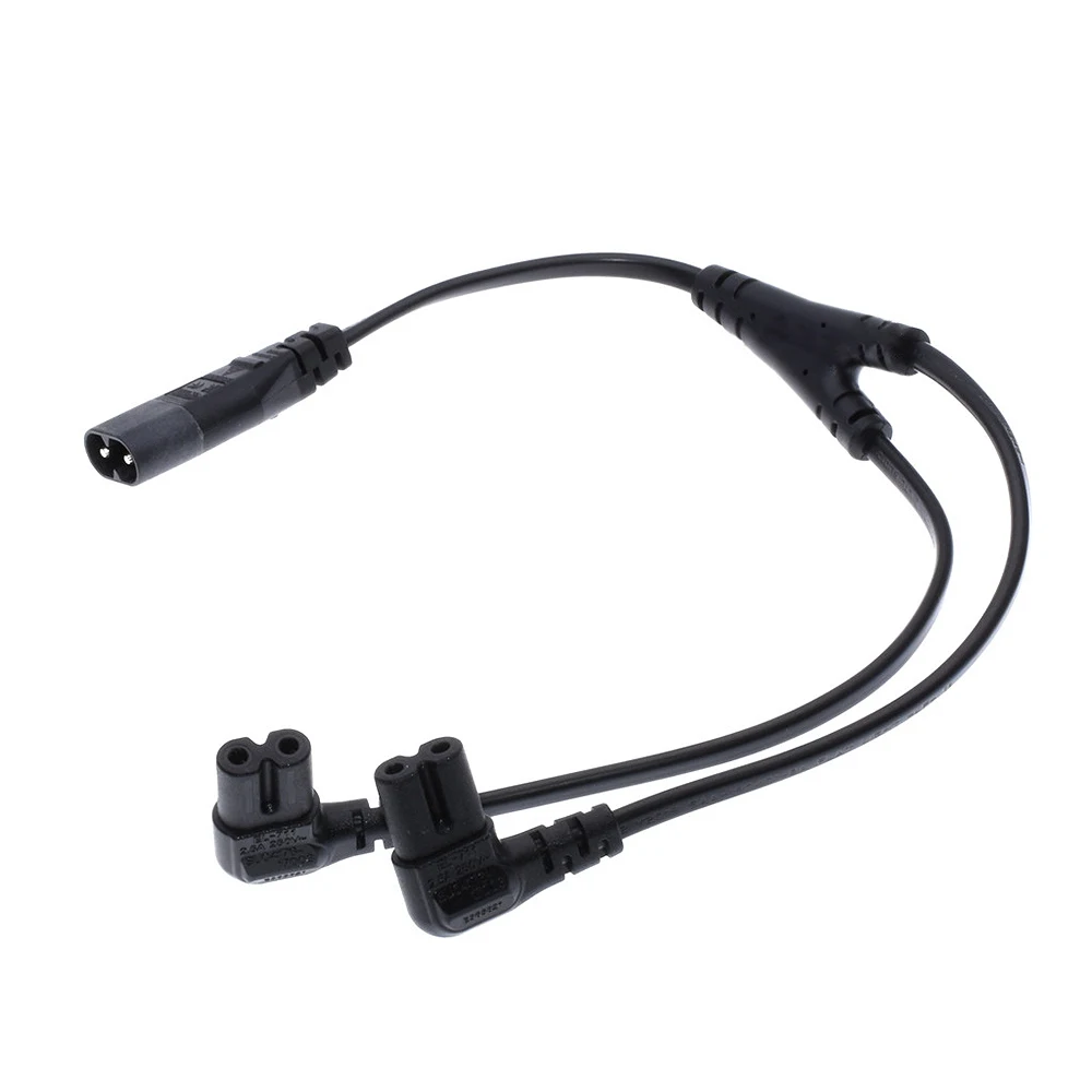 1PCS IEC 320 C8 Male to Dual C7 Right Angle Female Y Split Power Cable, IEC 2Pin Figure 8 Male to 2 Female Cord 45CM