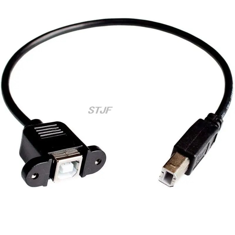High Speed 30CM M/F USB 2.0 Type B Male to Female Right Angle Extension Data Cable Panel Mount For Printer Cable with Screw Hole