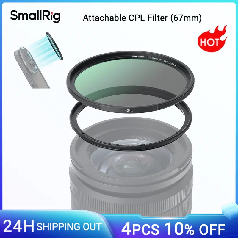 SmallRig Attachable CPL Filter, 67mm Magnetic Circular Polarizers Filter + 67mm Threaded Filter Ring for iPhone 15 Pro -4582