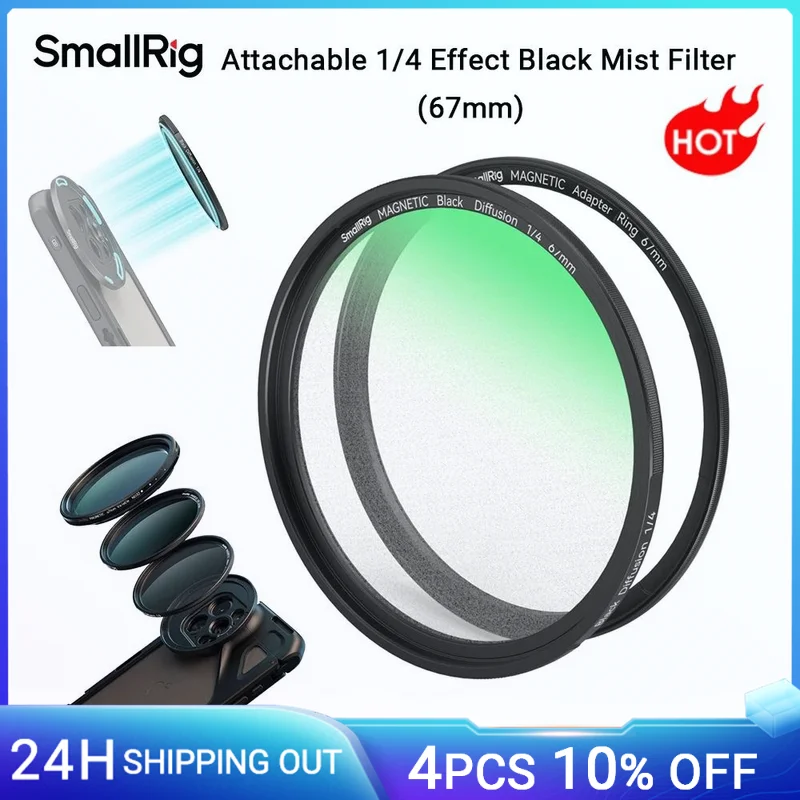 SmallRig Attachable 1/4 Effect Black Mist Filter (67mm) With 67mm Threaded Filter Ring for Portrait Photography/Video/Vlog -4583