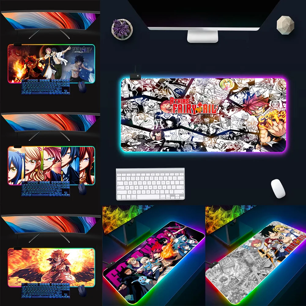 Japan Anime Fairy Tail RGB Pc Gamer Keyboard Mouse Pad Mousepad LED Glowing Mouse Mats Rubber Gaming Computer Mausepad