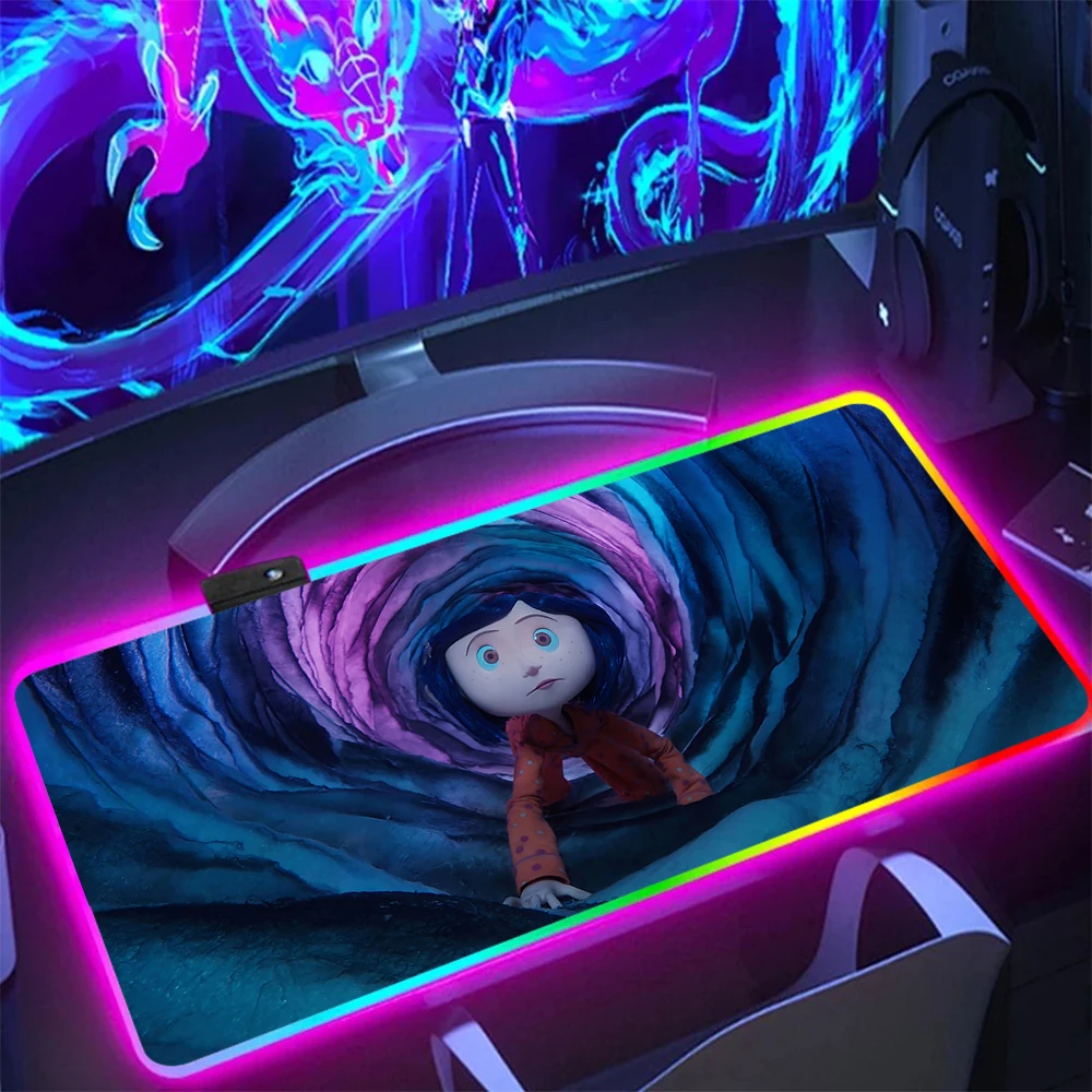 Anime Horror Film C-Coralines RGB Pc Gamer Keyboard Mouse Pad Mousepad LED Glowing Mouse Mats Rubber Gaming Computer Mausepad  Read more