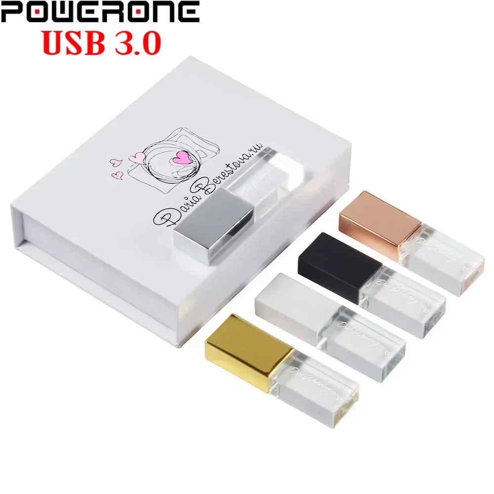 Free LOGO USB 3.0 Flash Drive 128GB Crystal Memory Stick 64GB High Speed Pen Drives 32GB Wedding Gift Pendrive 16GB U Disk 8GB