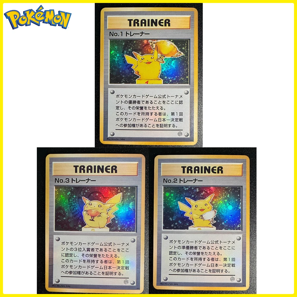 BLBU PTCG 3Pcs/set Pokemon Card Pikachu Collection Card Diy The Original Trophies Pikachu Champion Cards Anime Gift Shield Cards