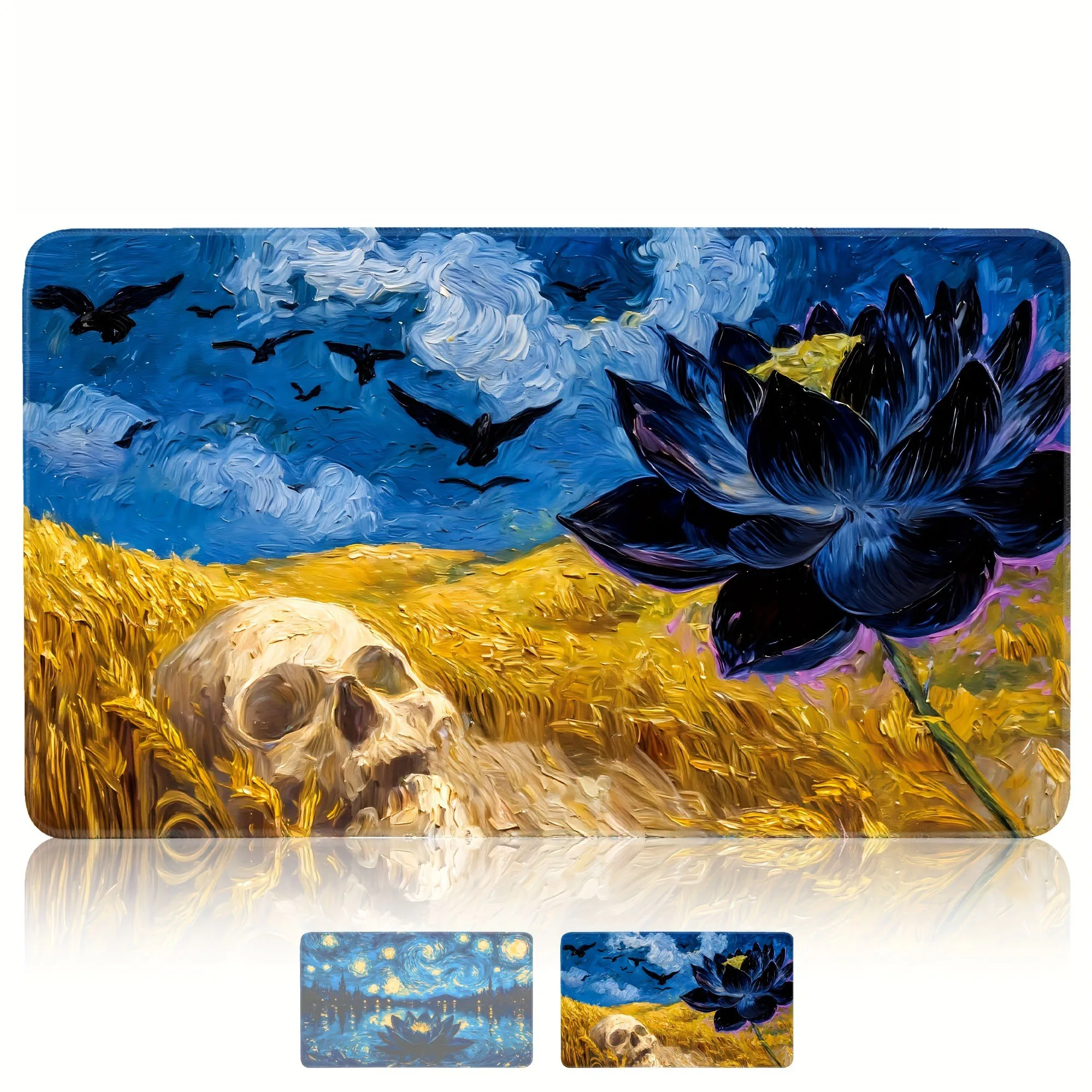 Van Gogh's Starry Night and Lotus Design Mouse Pad Computer Offices Mousepad Anti-slip Playmat for MTG DTCG CCG RPG Trading Rug