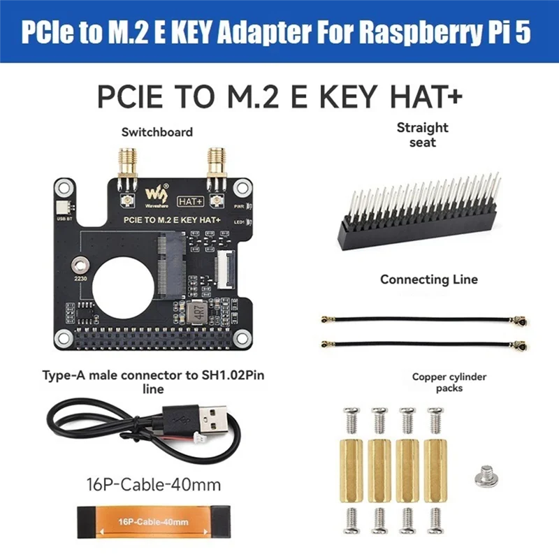 Waveshare Pcie To M.2 E KEY Adapter Board HAT+ For Raspberry Pi 5 Wireless Network Card Expansion Board Supports USB/Bluetooth  Read more