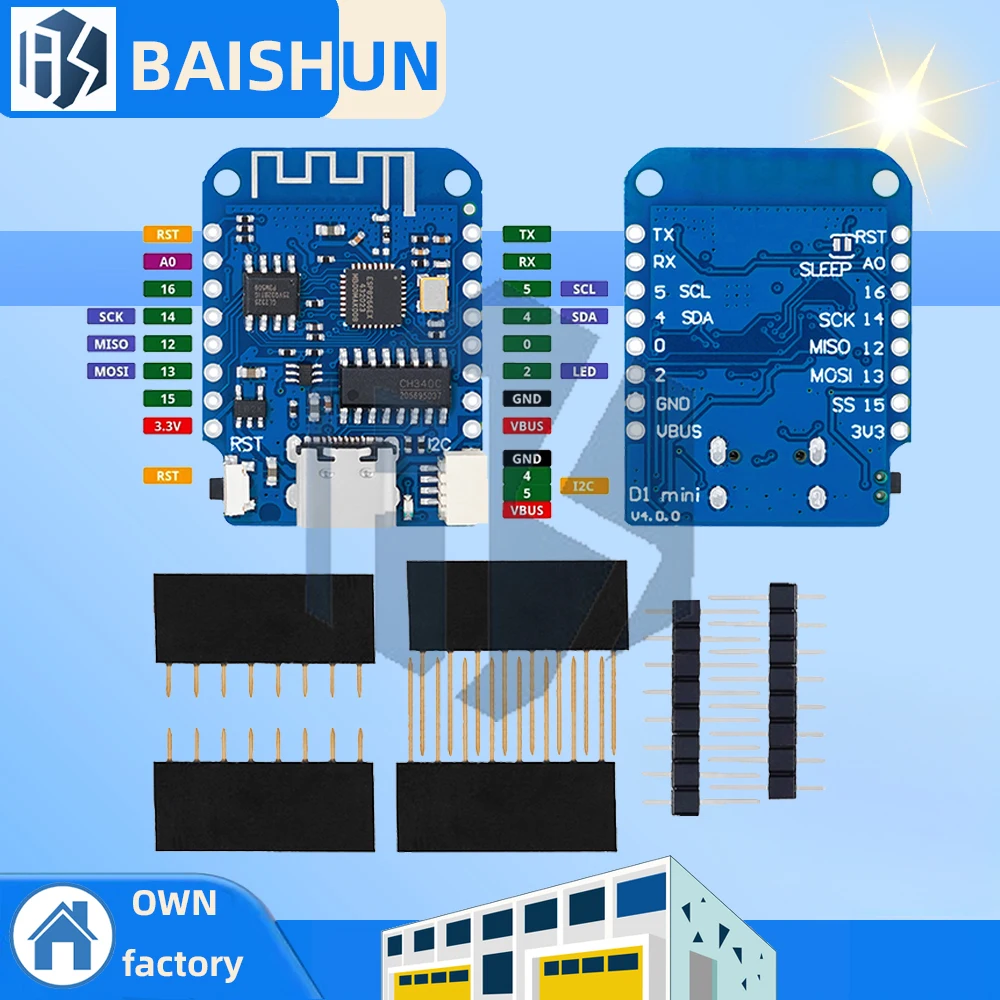 for WEMOS D1 Mini V4.0.0 TYPE-C USB WIFI Internet of Things Board based ESP8266 4MB MicroPython Nodemcu For Arduino Compatible  Read more
