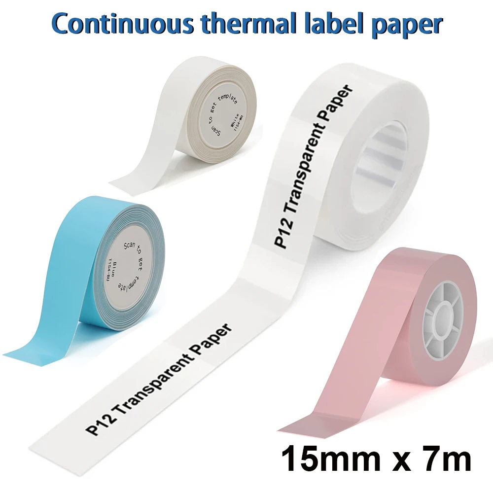 Phomemo D30 Continuous Color Label Paper 15mm X 7m Compatible for D30 D35 Q30 Label Maker Thermal Printing Inkless & Clean