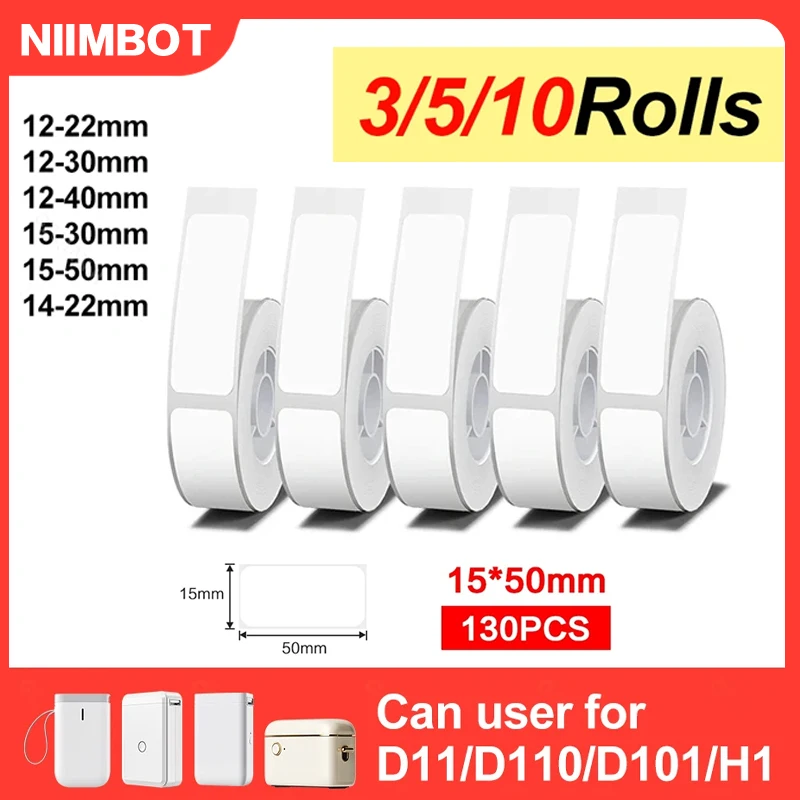 Niimbot D11/D101/D110 Mini Portable Printer White Tape Sticker 3/5/10 RollsPapers Waterproof Anti-Oil No Glue Thermal Label