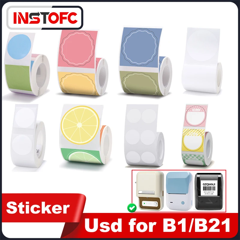 NiiMBOT Round Label Sticker Thermal Paper for B21 B3S B1 Label Maker Anti-tear Self-adhesive White Color Rolls Tape Cake Price