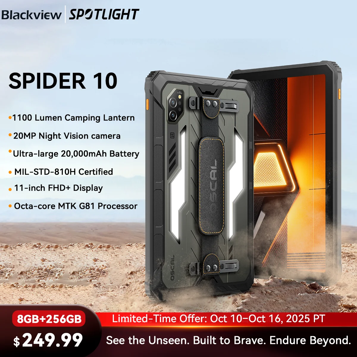 Blackview OSCAL SPIDER 10 Rugged Pad, 11'' FHD+IPS 60Hz Display 8GB 256GB 20000mAh, MediaTek Dimensity G81, Android 15 Tablet